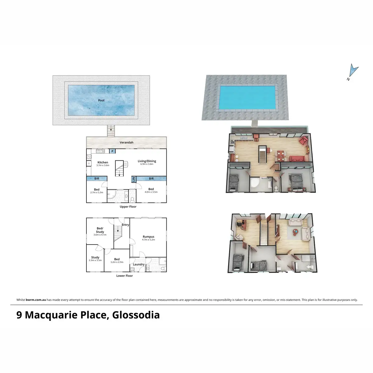 Downstairs has a huge rumpus that makes an excellent cinema room, with a second full bathroom and a separate laundry. The large open plan office, also downstairs, could easily be a guest room, fifth bedroom or extra living space, and is the perfect compliment for working from home. A third and fourth carpeted bedroom complete the downstairs space.