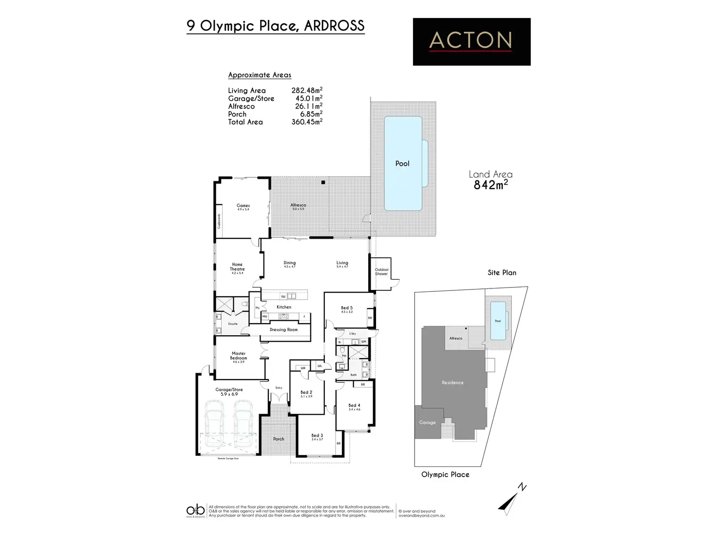 - Sunken and carpeted theatre room, leading through to an elevated, carpeted games room with two double storage cupboards and sliding-stacker-door access to the backyard