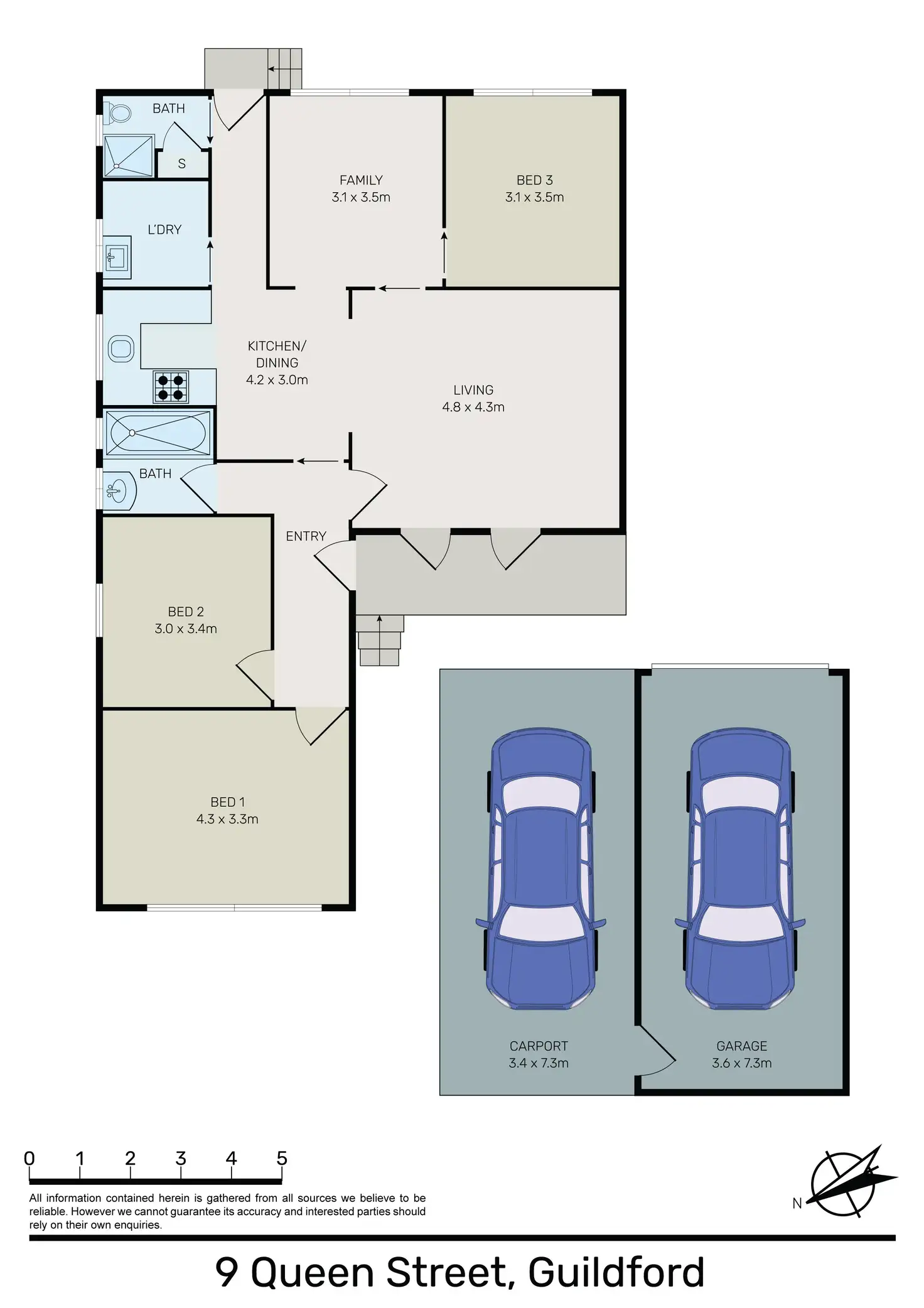 3 Bed • 1 Bath • 2 Car