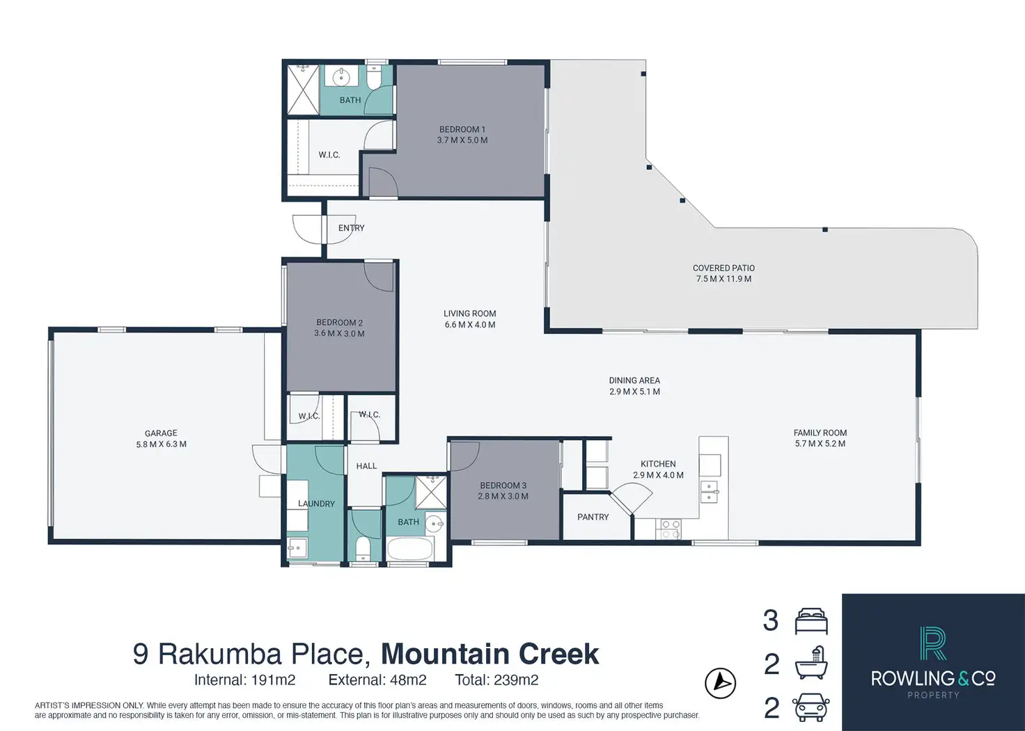 3 Bed • 2 Bath • 2 Car • 728m²