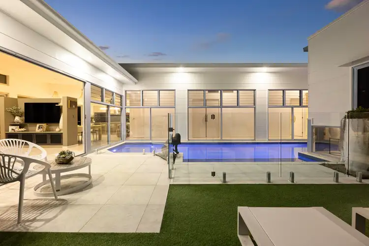 Elegant waterfront living with a perfect north-easterly aspect and ocean access is on offer with the purchase of this stunning 2012-built custom-designed residence on a 798m2 fully fenced block with 15.5-metre river frontage, in a coveted dress circle street on the northern side of Kawana Island, offered to the market for the first time.