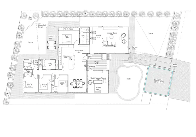 Step outside to discover a private backyard oasis with lush lawns and a second front lawn area, perfect for children or pets to play. The secure garage, complete with a pedestrian access gate, intercom doorbell, and camera, ensures peace of mind. And for those warm tropical days, the private swimming pool, hidden from street view, provides the ultimate escape.