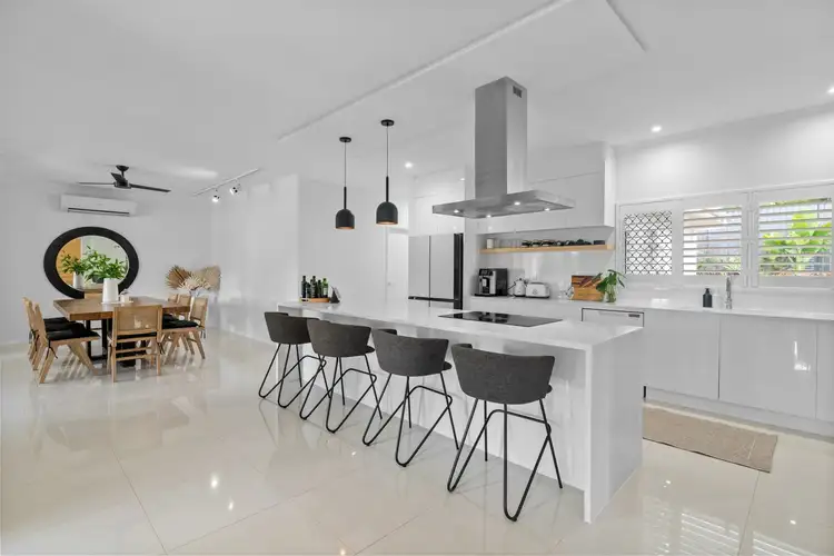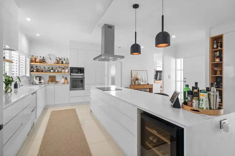 As you enter, you'll be captivated by the spacious, light-filled interiors, accentuated by split system air conditioning throughout. The heart of the home is the chef's designer kitchen, boasting sleek Corian benchtops, an induction cooktop, and soft-close cabinetry. A large island bench completes this culinary masterpiece, perfect for entertaining guests in style.