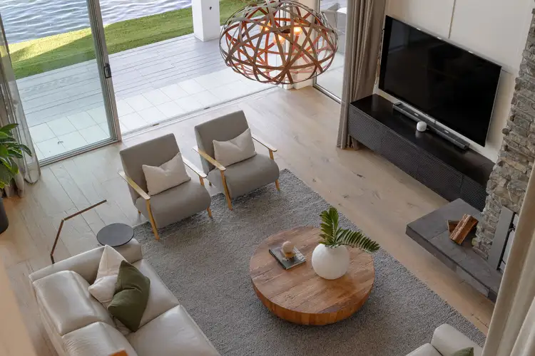 Set upon the coveted waterfront of Noosa Waters, this residence is a rare offering of scale, luxury and timeless coastal sophistication. Designed to balance architectural detail with warmth and comfort, it is an expansive family estate that captures the very best of waterfront living. Inside, a curated palette of natural textures and refined finishes defines the interiors-Tasmanian oak balustrades, dark hardwood feature walls, white VJ panelling and a Queensland porphyry stone fireplace bring both elegance and a sense of place.