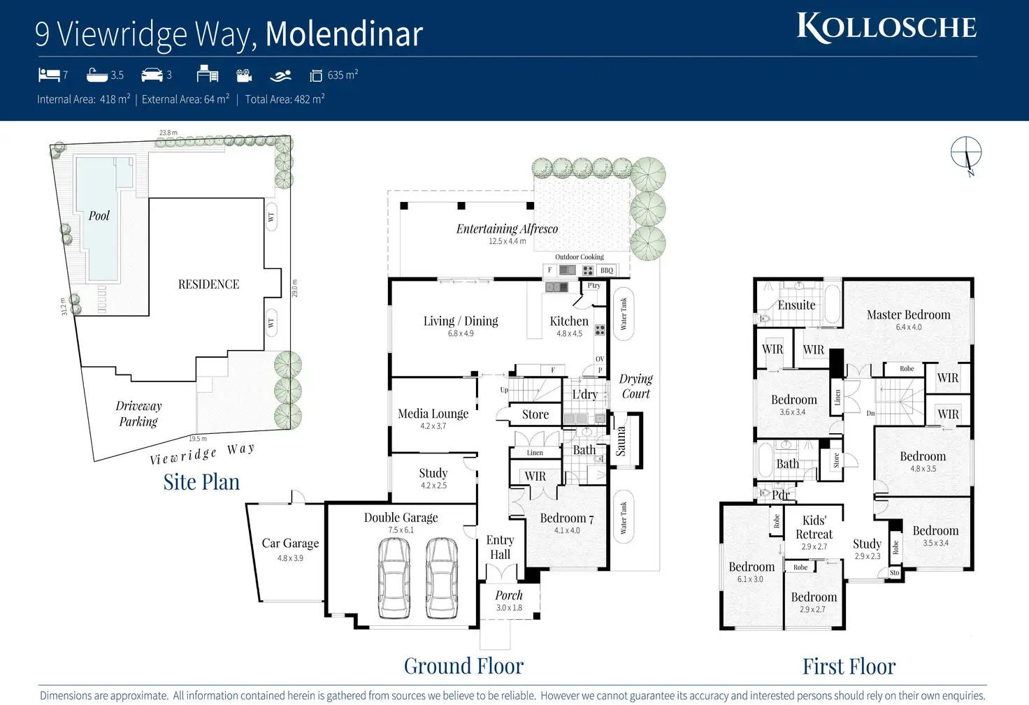 - Spanning 482m2 across two levels with high-end fixtures and fittings throughout;