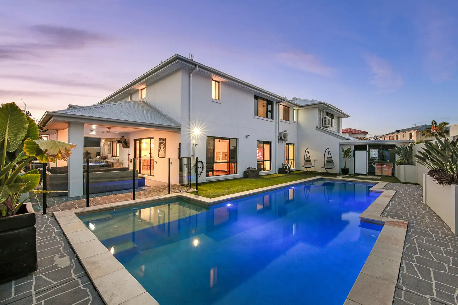 - Resort-style solar heated lap pool with multi-coloured lighting;