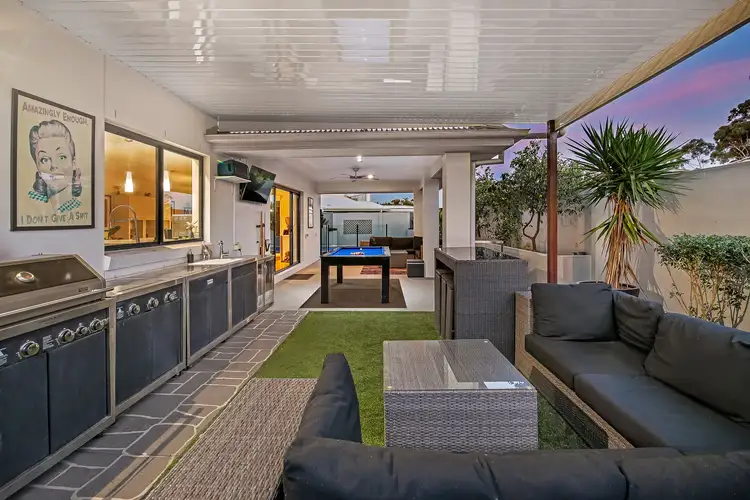 Along with another main bathroom, a home office and study nook, what this high-quality house also excels at is entertaining. A full outdoor kitchen on the covered alfresco area makes catering for large scale celebrations or casual catch-ups effortless, with a large solar heated lap pool with multi-coloured lighting the perfect complement. All ages will adore this resort-style solar addition to the home, trimmed by easy-care gardens.