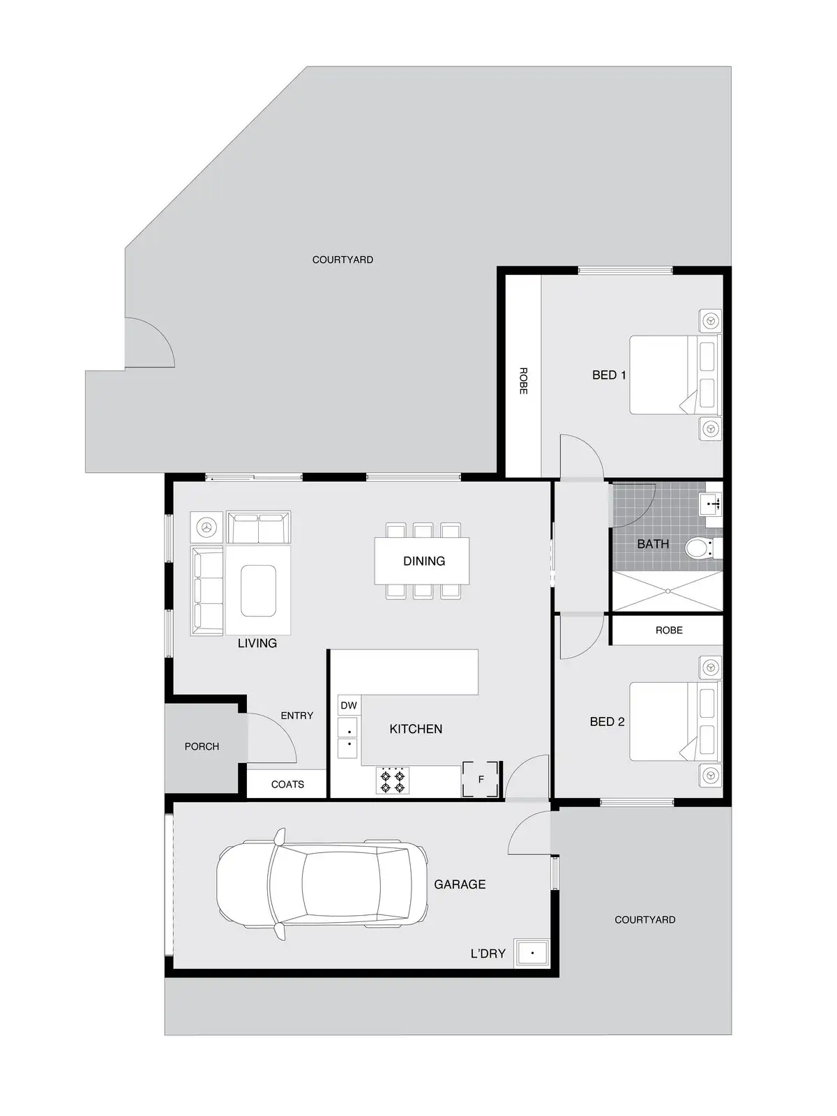• Courtyard with hanging space and side gate access