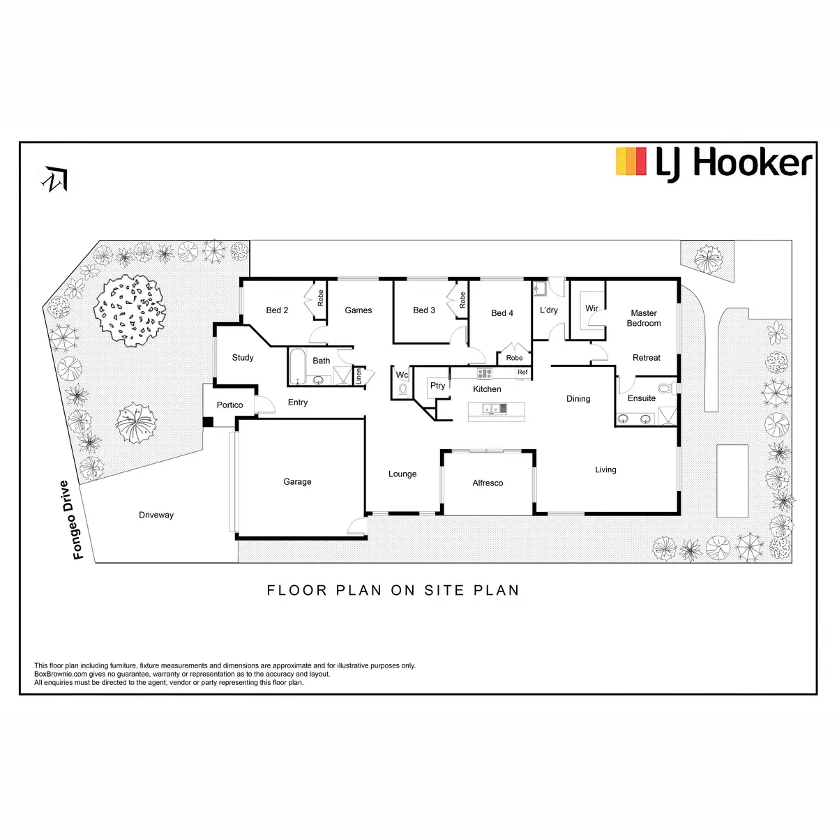 - A tidy, landscaped front yard offers a warm welcome to the property in combination with the beautifully designed home anterior, then upon entering, the hallway guides through to impressive, shared spaces including a serene study, spacious games room, massive lounge and open plan family living/dining/kitchen zone.