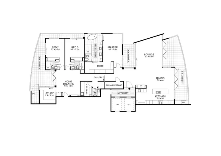 * 3 ensuited king bedrooms & study