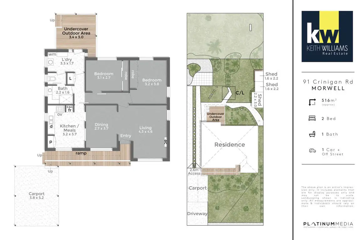 2 Bed • 1 Bath • 1 Car • 516m²