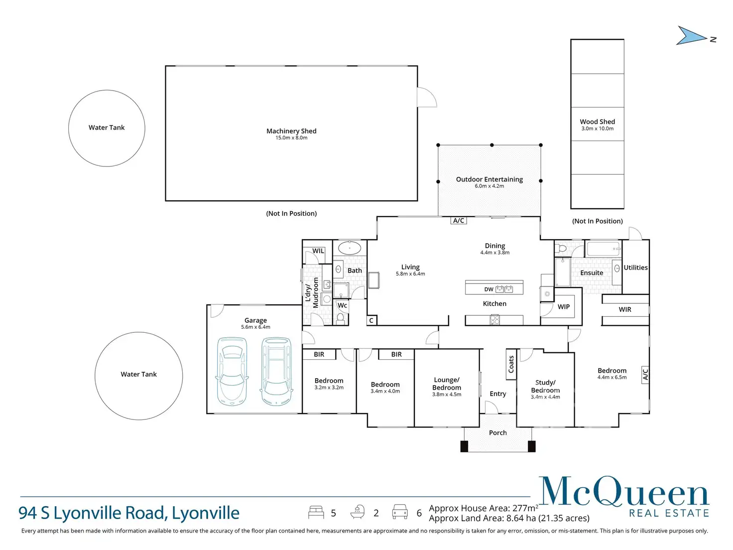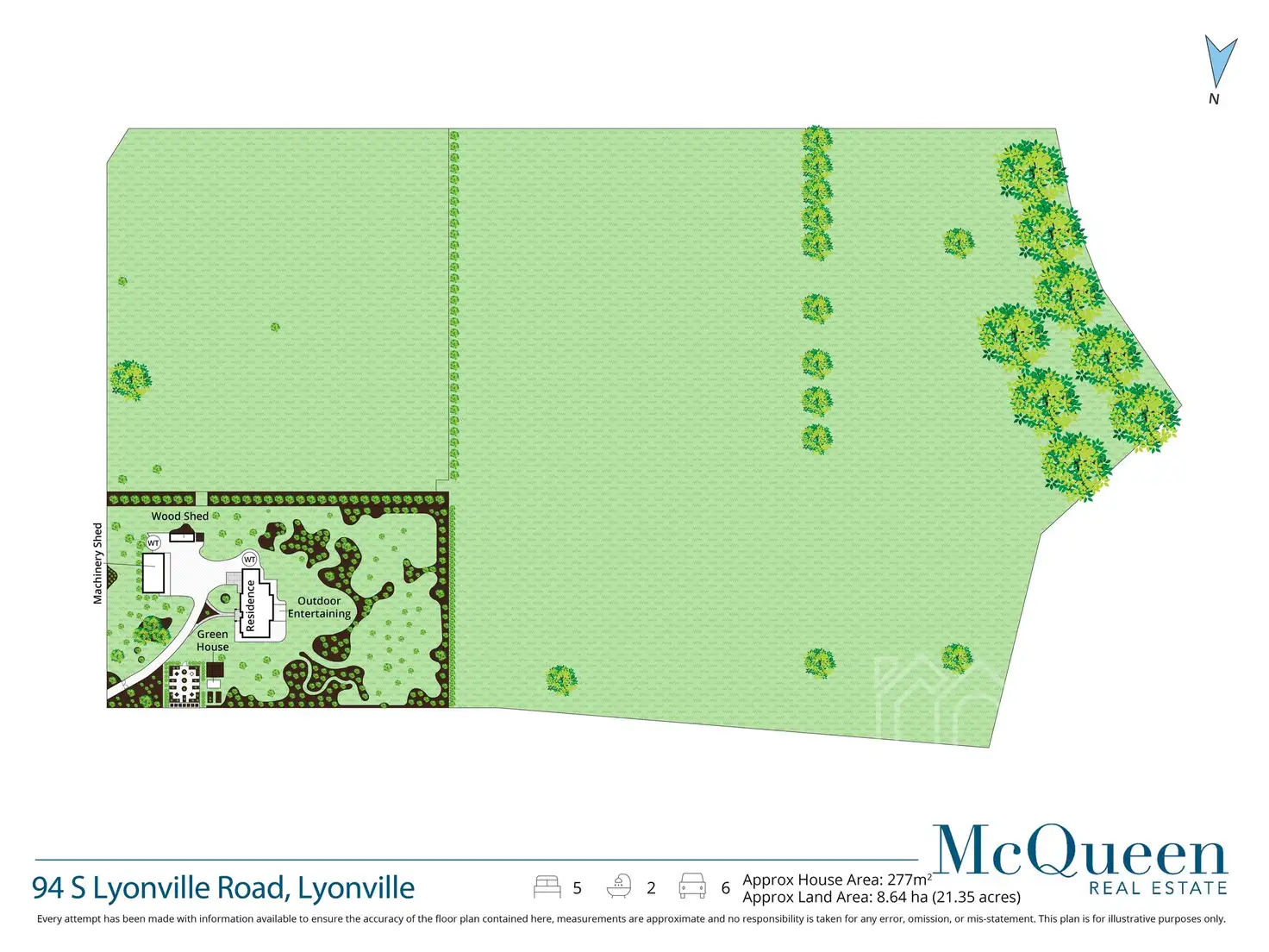 Outside, find a kitchen garden, glass greenhouse and structured garden beds in harmony with winding lawn paths, all protected by double fencing and a windbreak. Extensive infrastructure includes a four-bay machinery shed with extra height for caravan storage, a large open bay woodshed, ample rainwater storage, bore, water treatment plant, two phase power, 5kW solar system and automatic entry gate.