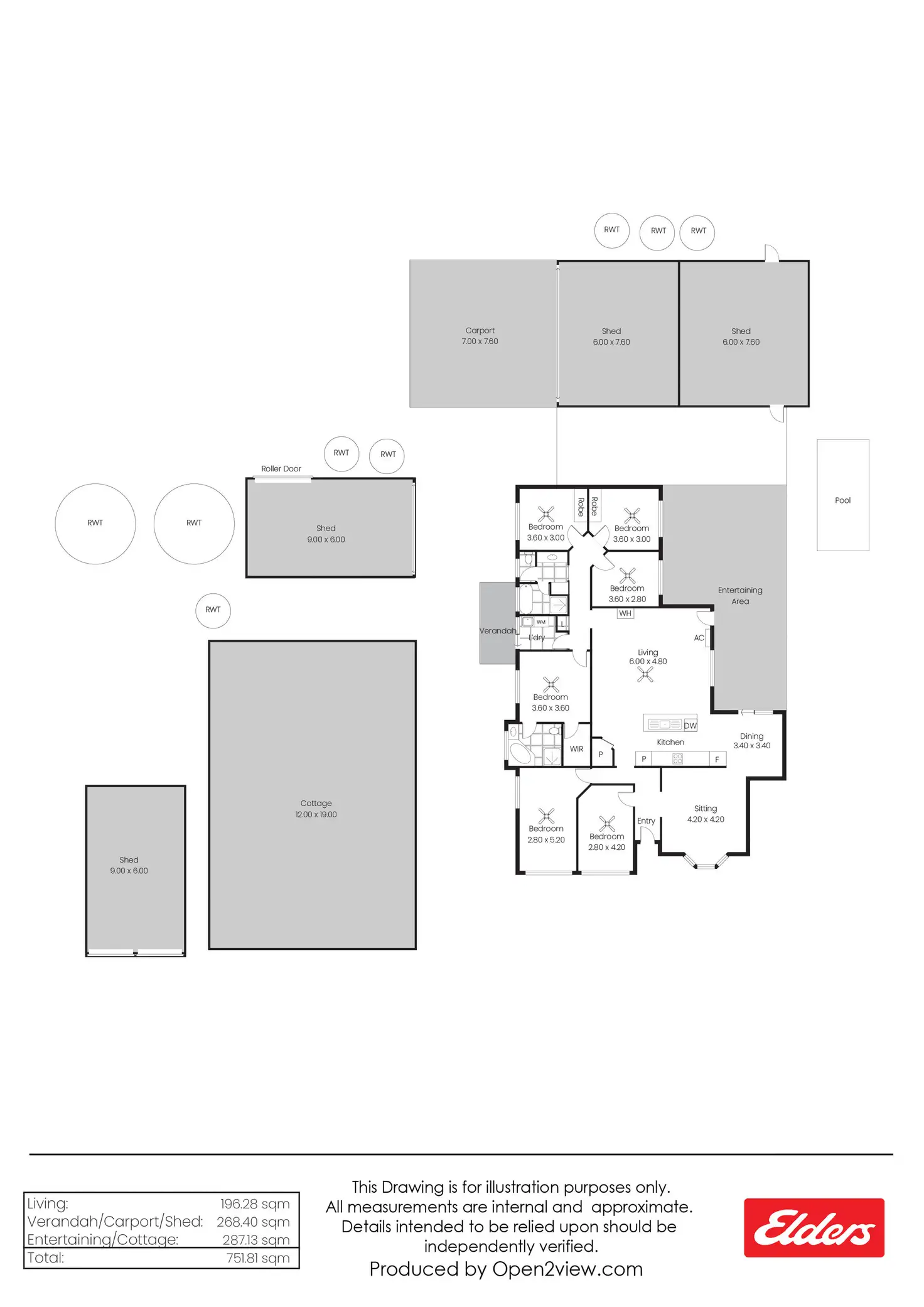 • A double carport with room for caravan storage plus a separate 15m x 6m shed.