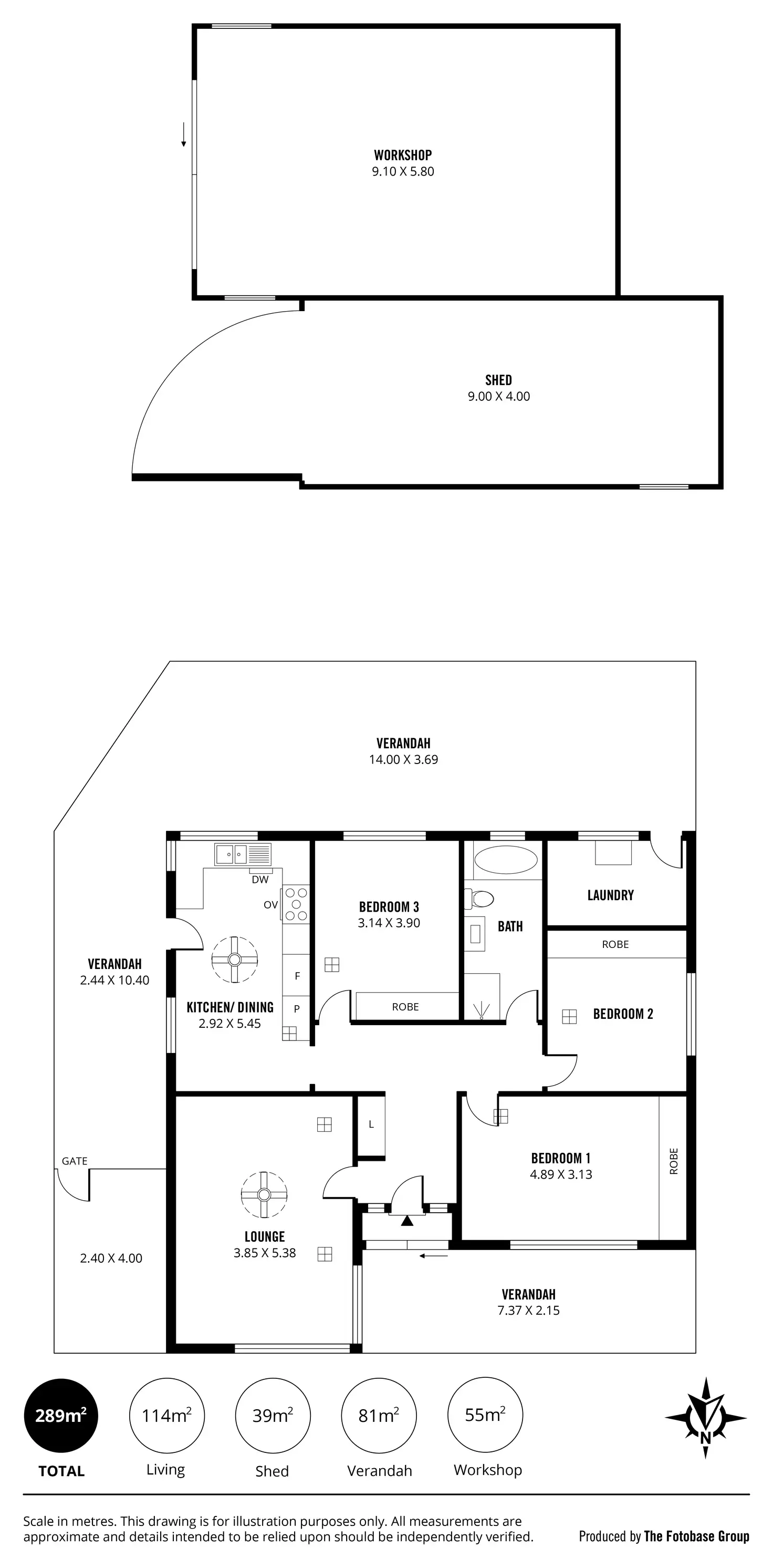 Large shed & garage for storage or workspace