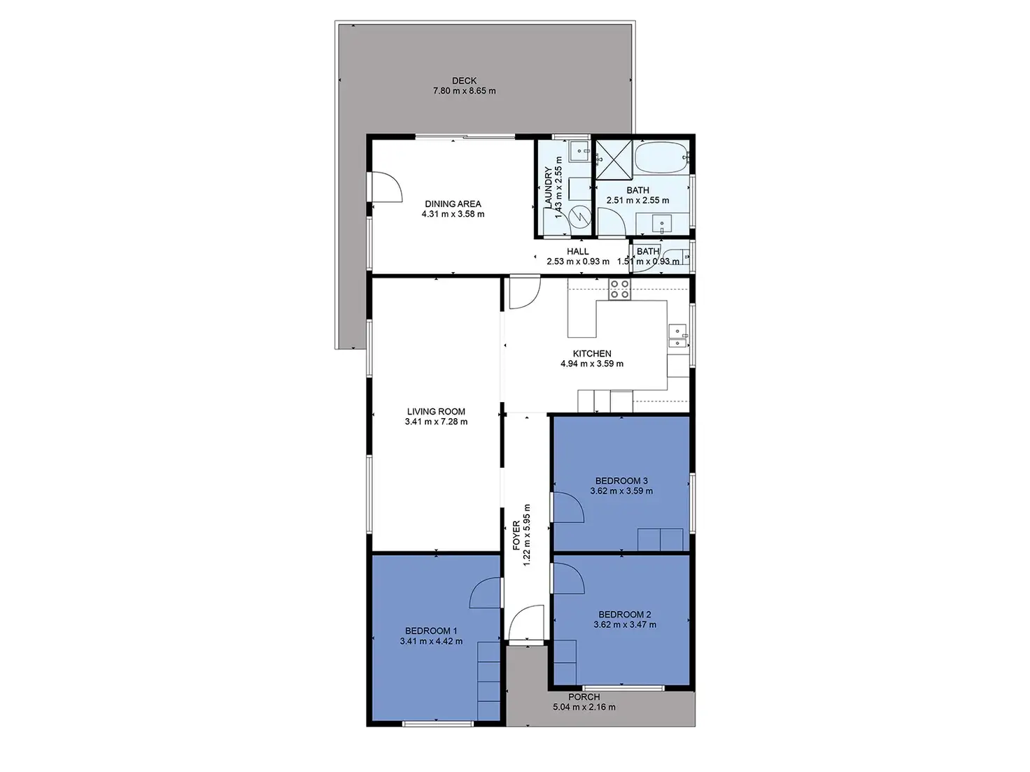 - Double-glazed windows and rear sliding doors for year-round comfort
