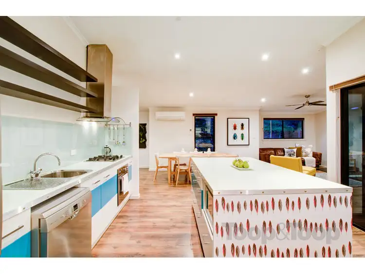 The living spaces themselves are just gorgeous. The open plan living, dining and kitchen work together harmoniously, creating an inviting space where you'll simply love to entertain family and friends. The kitchen itself is a modern, eclectic twist on a 60s classic; comprising of a large walk in pantry, stainless steel appliances and two mobile island benches to suit a myriad of uses. The taller of the two boasts a wine fridge and separate bar fridge, incredible storage and with space to pull up a stool it is the ideal 'bar'.
