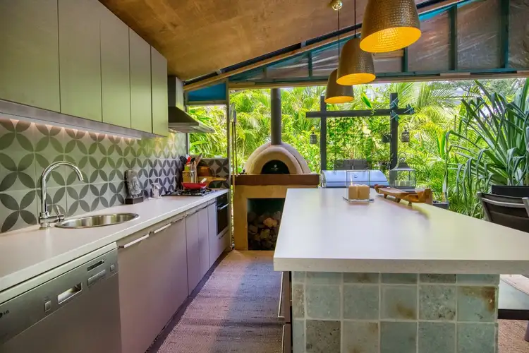 Dance, sleep, meditate or just escape! The full outdoor kitchen is a true delight. Complete with gas BBQ, pizza oven, dishwasher, another oven, with gas cook top, wine fridge and conversation hub.