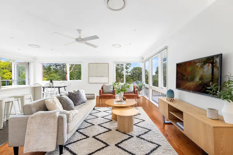 Resonating an instant state of calm, this hidden lifestyle home guides a light-drenched open plan design throughout an elevated single-level layout, fostering balanced family living and connection. Marked by thoughtful restraint, contemporary interiors are shaped by oversized picture windows granting a canopy of views from every room. Lounge and dining spaces flow through a stone kitchen designed to simultaneously serve indoors and out, with wide-opening bi-folds expanding to a full-span deck, inspiring a beautiful alfresco lifestyle. Framed by privacy, a flat backyard escape unfolds over an attractive setting cherished by families. Well-appointed bedrooms, a primary with a walk-in wardrobe and two invigorating bathrooms are accented with spa-inspired modernity. A position of ease, steps from Turramurra Primary School, local shops, sporting grounds and well-connected bus services, this immaculately presented home shines amongst its leafy surroundings.