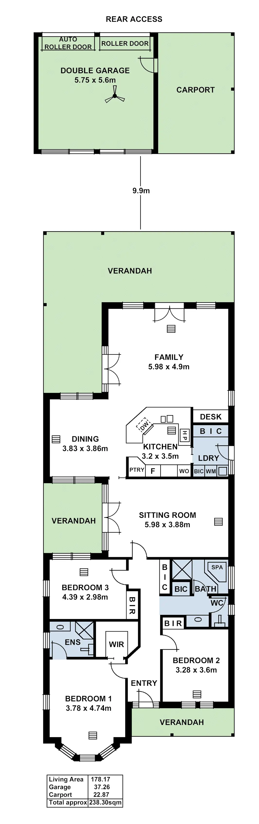 3 Bed • 2 Bath • 3 Car • 522m²
