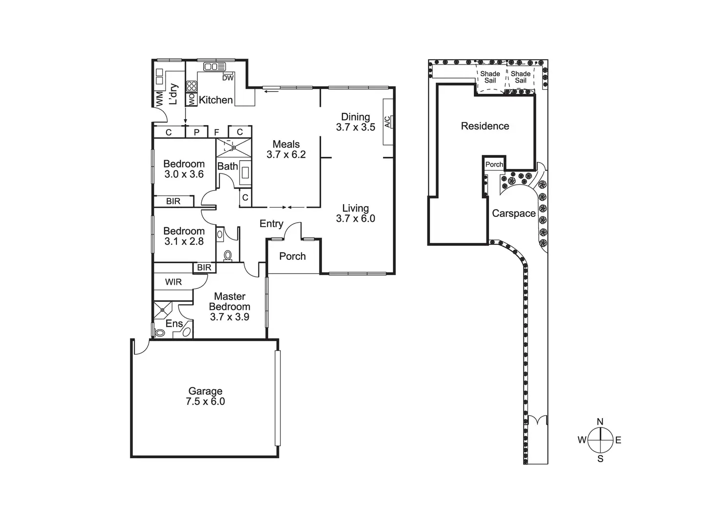 * Paved north-facing alfresco courtyard with lighting