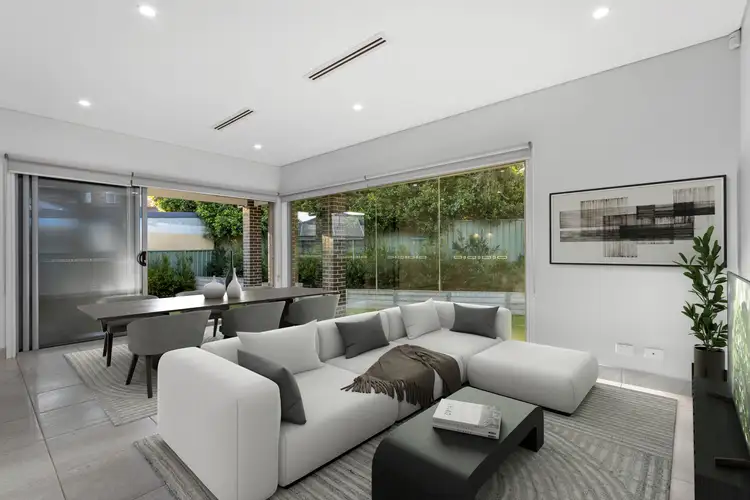 • Open plan living and dining area seamlessly extending to a covered alfresco through wall-to-wall glass sliding doors, creating an effortless indoor-outdoor connection