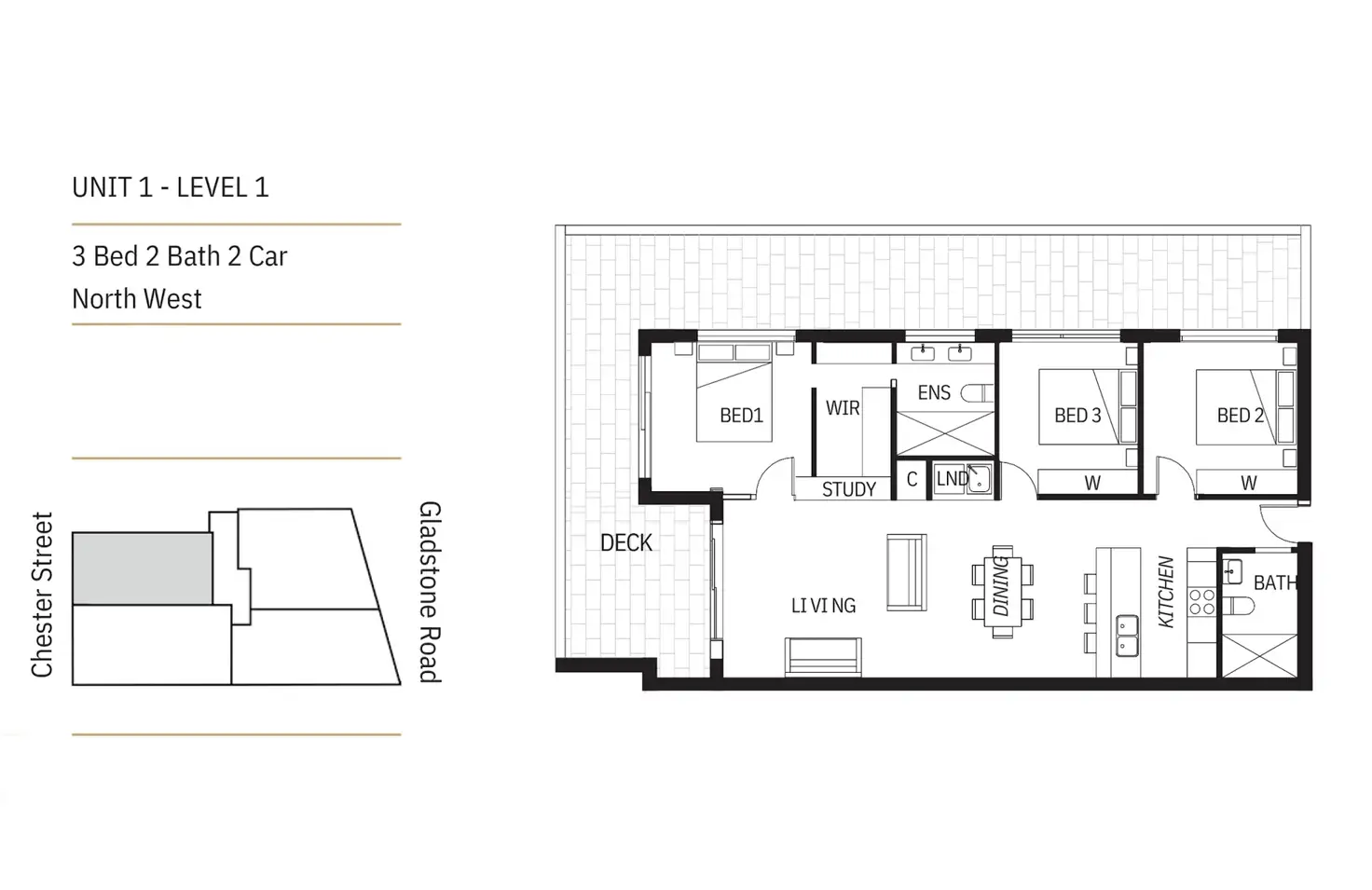 Unit 3-$1,350,000 ( 2 bed 2 bath 2 car ) -Facing Gladstone Road