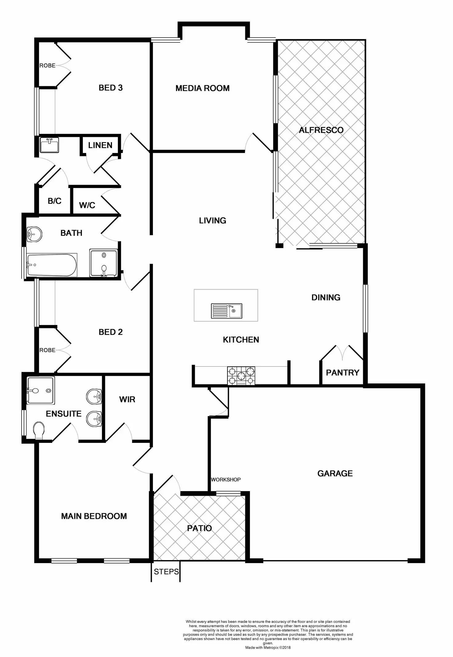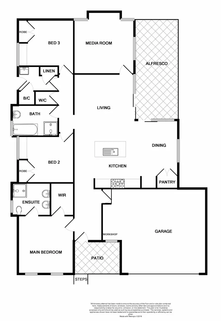 Walking through the front door you are greeted with high ceilings and a spacious tiled main hallway, which flows to your master bedroom with walk in wardrobe, ensuite with his and hers sink's and split system air conditioning. Continuing down the floor plan you have your open plan living, dining and kitchen area. The kitchen features five gas plate burner, island bench with built in storage, Caesar Stone bench tops and dishwasher. You have a media room at the rear of the floor plan with the remaining two bedrooms with main bathroom. The two bedrooms feature built in wardrobes, study desk and ceiling fans. The main bathroom has a separate toilet and features a hydrotherapy spa bath for all your relaxation needs.