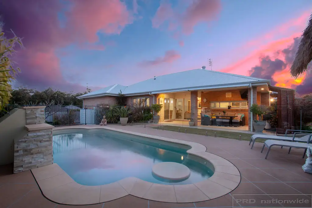 Glass sliding doors flow to your great outside undercover entertaining area. The entertaining area features ceiling fan, TV output and blinds that enclose the space for more privacy or protection from the weather. In ground heated swimming pool with water feature, spa jets and built in table. You also have a three by three meter Bali style cabana to relax and enjoy the views and beyond. The backyard is fully fenced with plenty of grass for the kids and pets to play. Double garage with storage space and internal access.