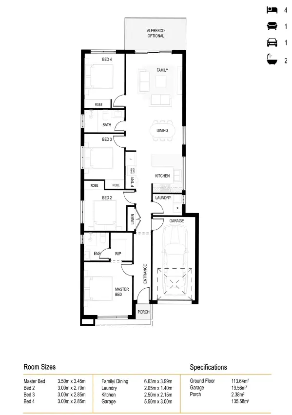 4 Bed • 2 Bath • 1 Car • 280m²