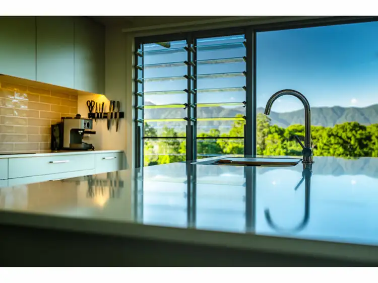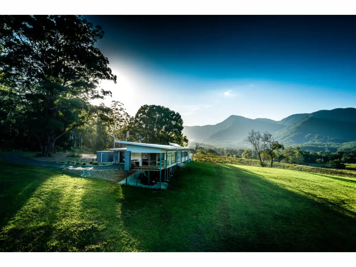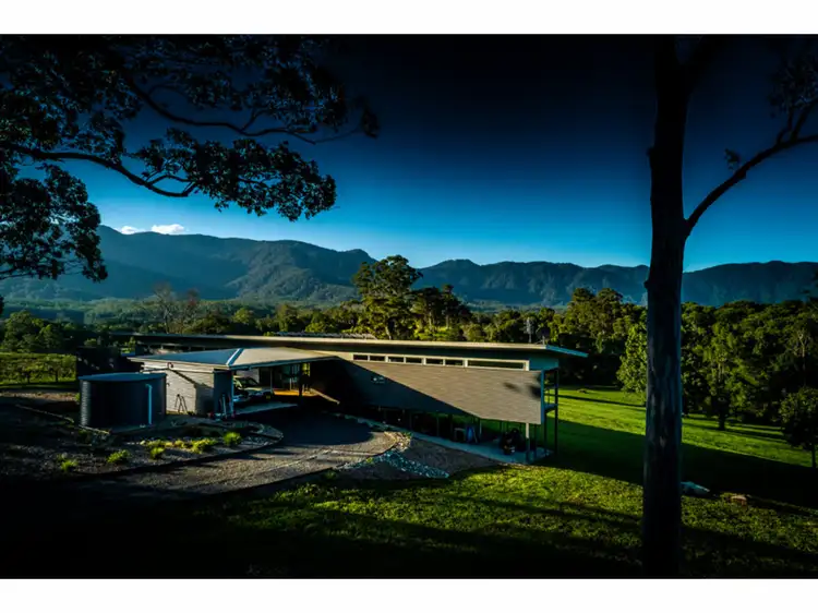 The sustainable architecturally-designed home....is special. Enter from an undercover carport. Notice the intelligent use of modern materials with neutral colours, glass and timber fitting naturally into the bushland setting. Solar passive in design, north facing and capturing ever changing views of rainforest covered mountain range. Watch stunning sun and moon-rises over the eucalypt-lined ridge, atmospheric conditions and passing seasons. The night sky mesmerises as the milky way and shooting stars trace overhead.