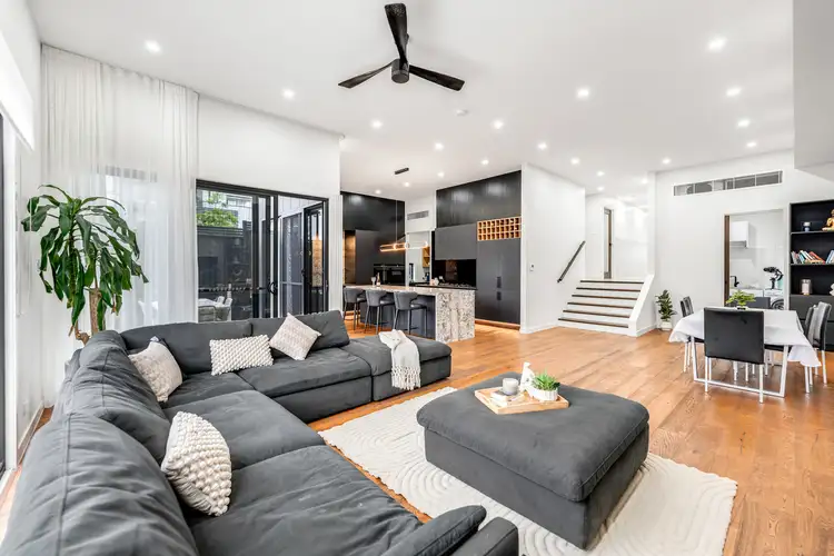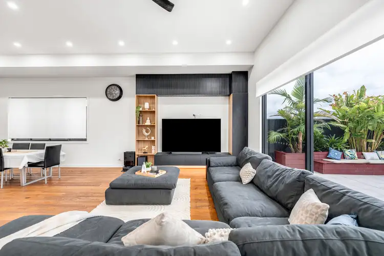 Step inside to discover a home that combines contemporary design with thoughtful functionality. The expansive open-plan living, dining, and kitchen area is the heart of the home, boasting soaring 3.5-metre ceilings that flood the space with natural light. This seamless living zone effortlessly transitions to the alfresco area and sparkling pool, delivering the perfect indoor-outdoor lifestyle for both entertaining and relaxation.