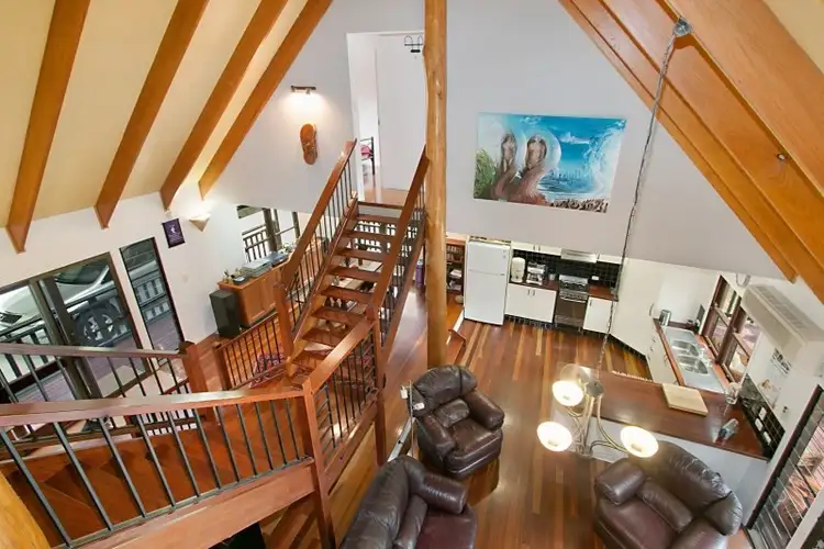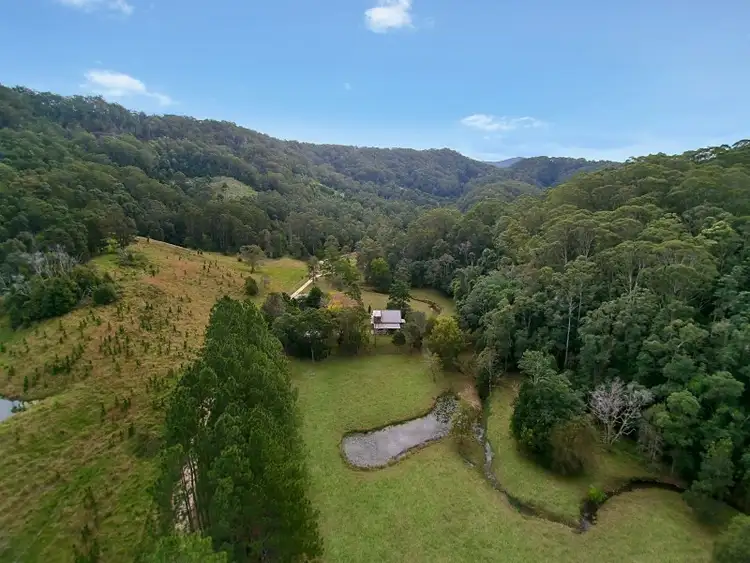 Twenty-three acres of perfect paradise await, crowned with the character laden split-level timber home complete with three bedrooms, a large loft easily converted into 4th bedroom, soaring cathedral ceilings, hardwood timber floors, timber sash windows and lead light feature window. A modern kitchen with timber bench tops and crisp white cabinetry is complete with gas stove and large pantry. The home offers ample accommodation with three bedrooms, all with built-in robes including the master bedroom that also has sliding door to a private deck and its own kitchenette.