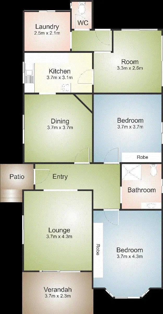 2 Bed • 1 Bath • 2 Car • 616m²