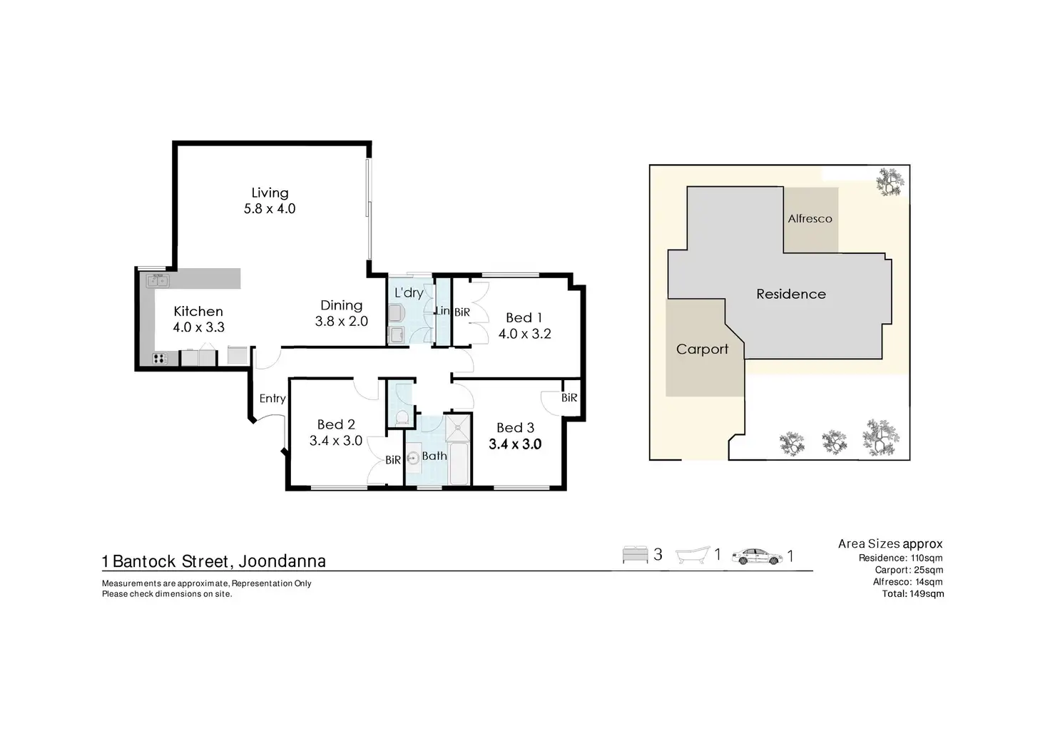 3 Bed • 1 Bath • 1 Car • 300m²