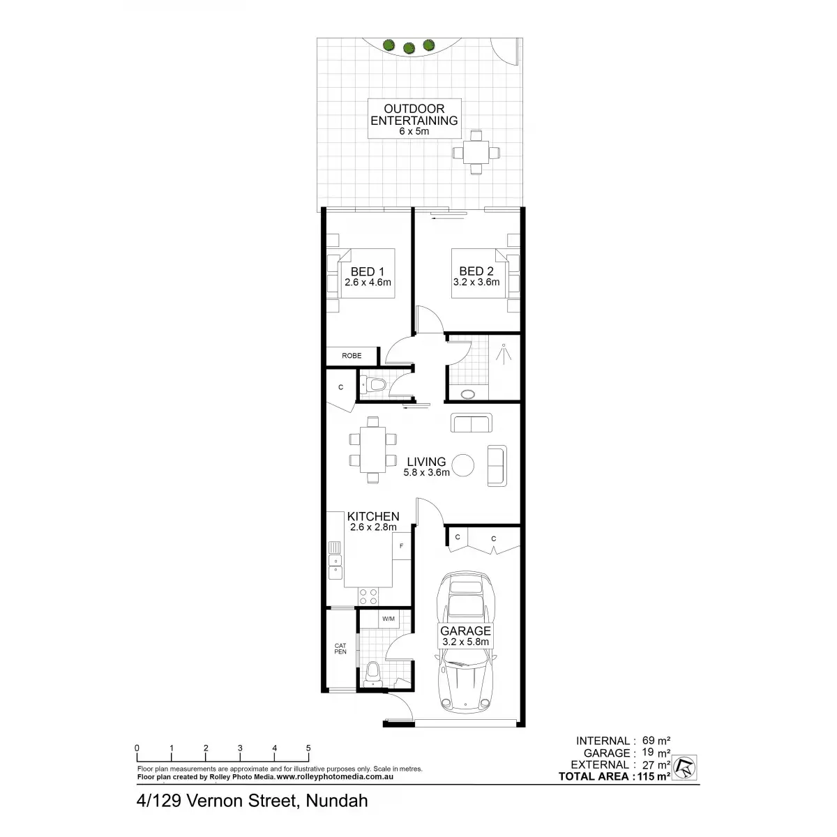 2 Bed • 1 Bath • 1 Car • 127m²