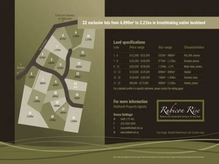 But you can still contact the agentLOT 15 Rubicon Rise, Northdown TAS 7307