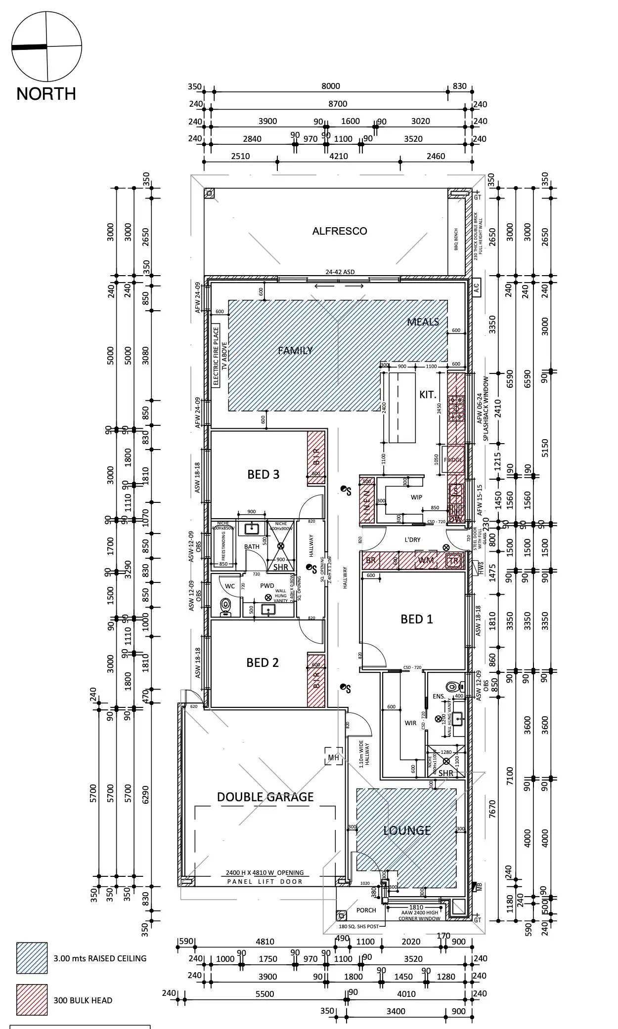 * All internal doors 2400 high (normally 2100)