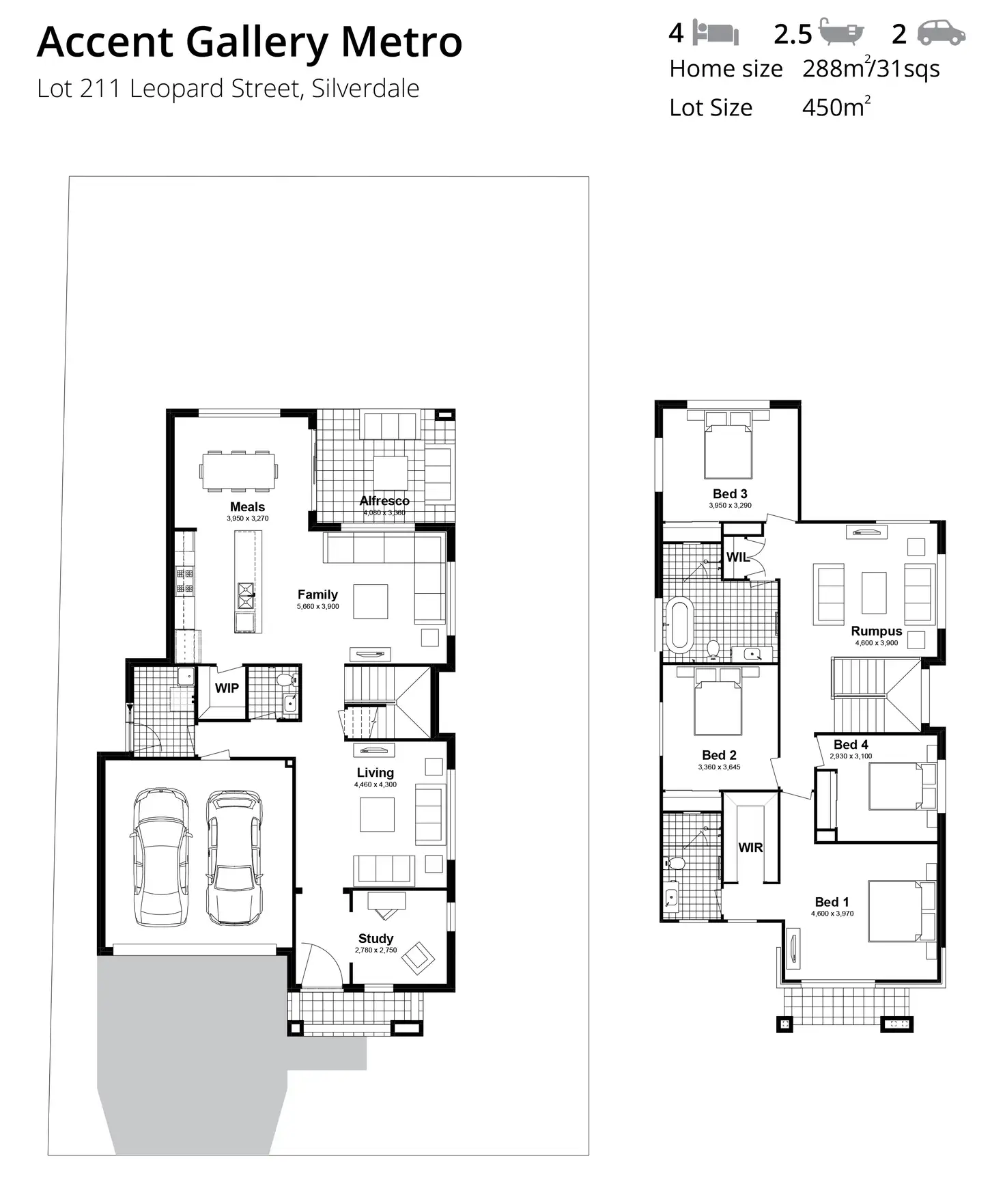 4 Bed • 2 Bath • 2 Car • 450.1m²