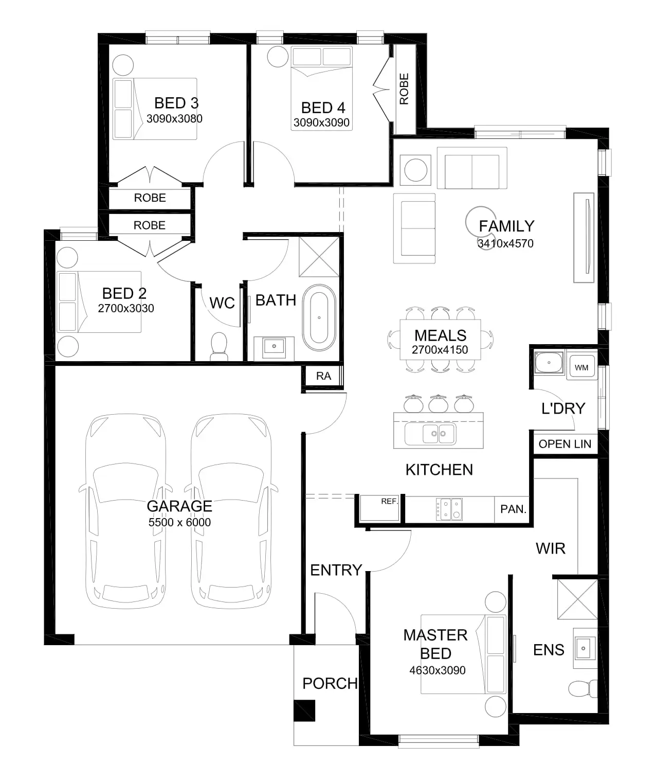 - Four spacious bedrooms with robes, including a private master with ensuite and walk-in robe