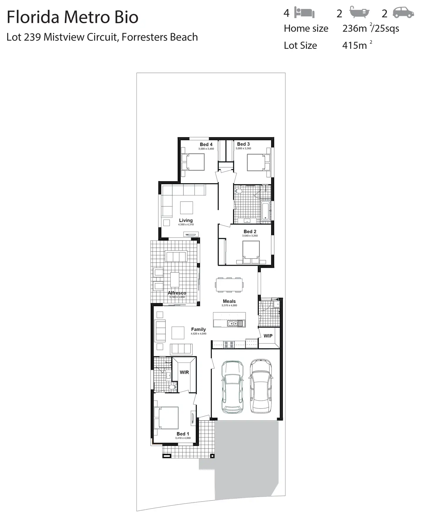4 Bed • 2 Bath • 2 Car • 415.02m²