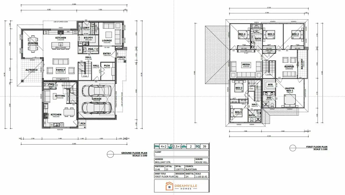 - 21.53m frontage blocks with modern façade double-storey homes, including a granny flat