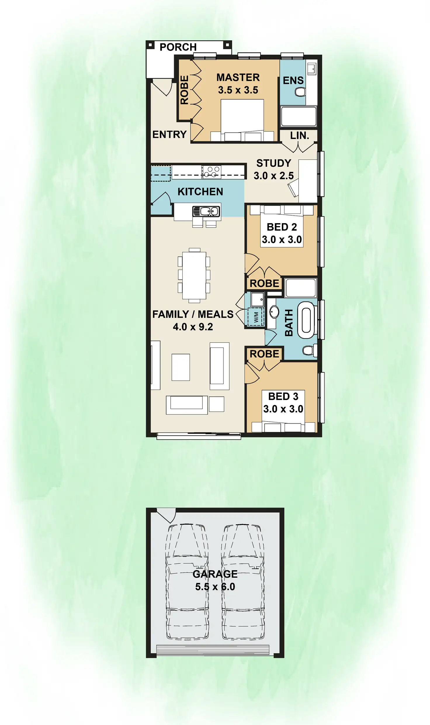 The master bedroom boasts a private ensuite and a generous robe, providing a serene retreat for the homeowners. Two additional bedrooms offers plenty of space for children or guests. The modern family bathroom is well-appointed and includes a bathtub, perfect for a relaxing soak after a long day.