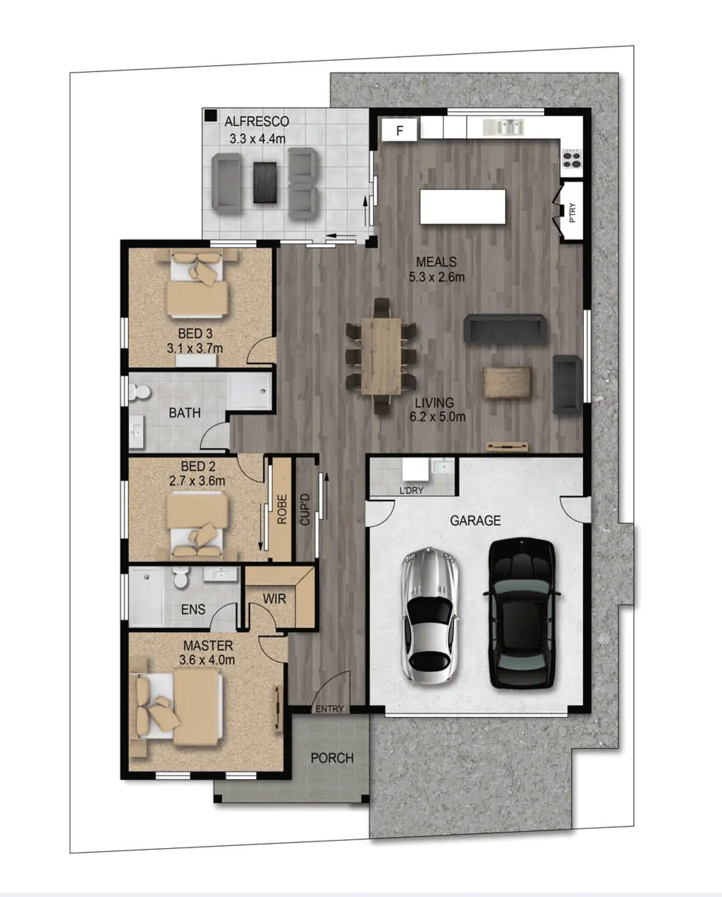 3 Bed • 2 Bath • 2 Car • 290m²