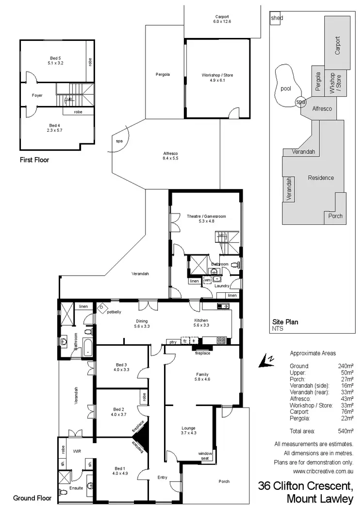 •5 Queen sized bedrooms, the main with ensuite & walk in robe