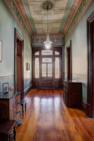 Some of the special features include ceiling heights at either ten foot or fourteen foot, ornate pressed metal ceilings in all living rooms and some bedrooms and leadlight windows and ornate fretwork in all living rooms. There are two wide hallways, and a total of eleven fireplaces, most with marble surrounds.