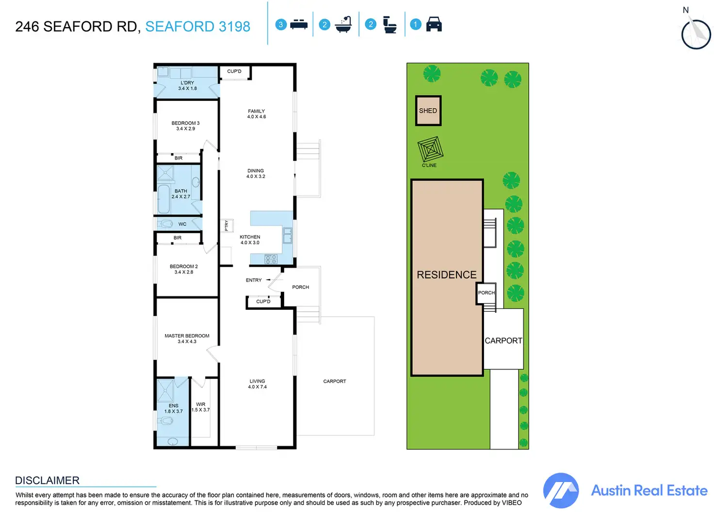 3 Bed • 2 Bath • 2 Car • 692m²