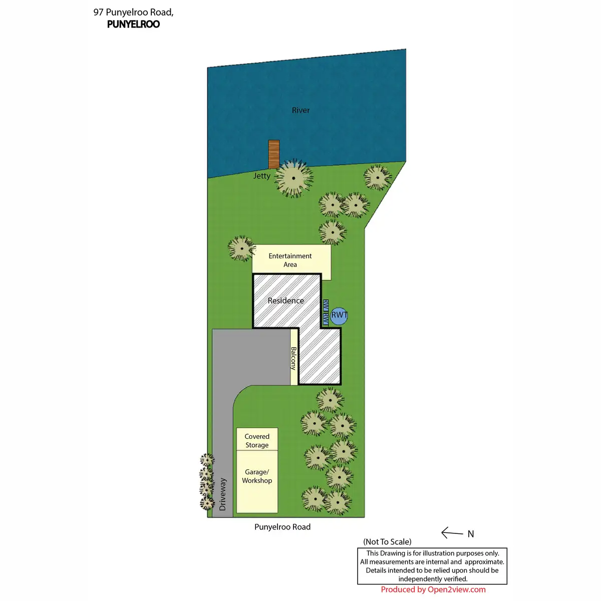 IMPROVEMENTS: Keep all the toys in the 30’ x 20’ garage that has sliding doors at both its side and front entrances. In addition, there is a 10’ shelter out front. With power and concrete floor there is no need to transport everything up and back if using as a holiday destination. A rainwater tank is plumbed to the kitchen and supports the water supply from the river to the property. The jetty extends from the lawn some distance into the river making it ideal to moor boats and simply just adds further enjoyment to owning the property.