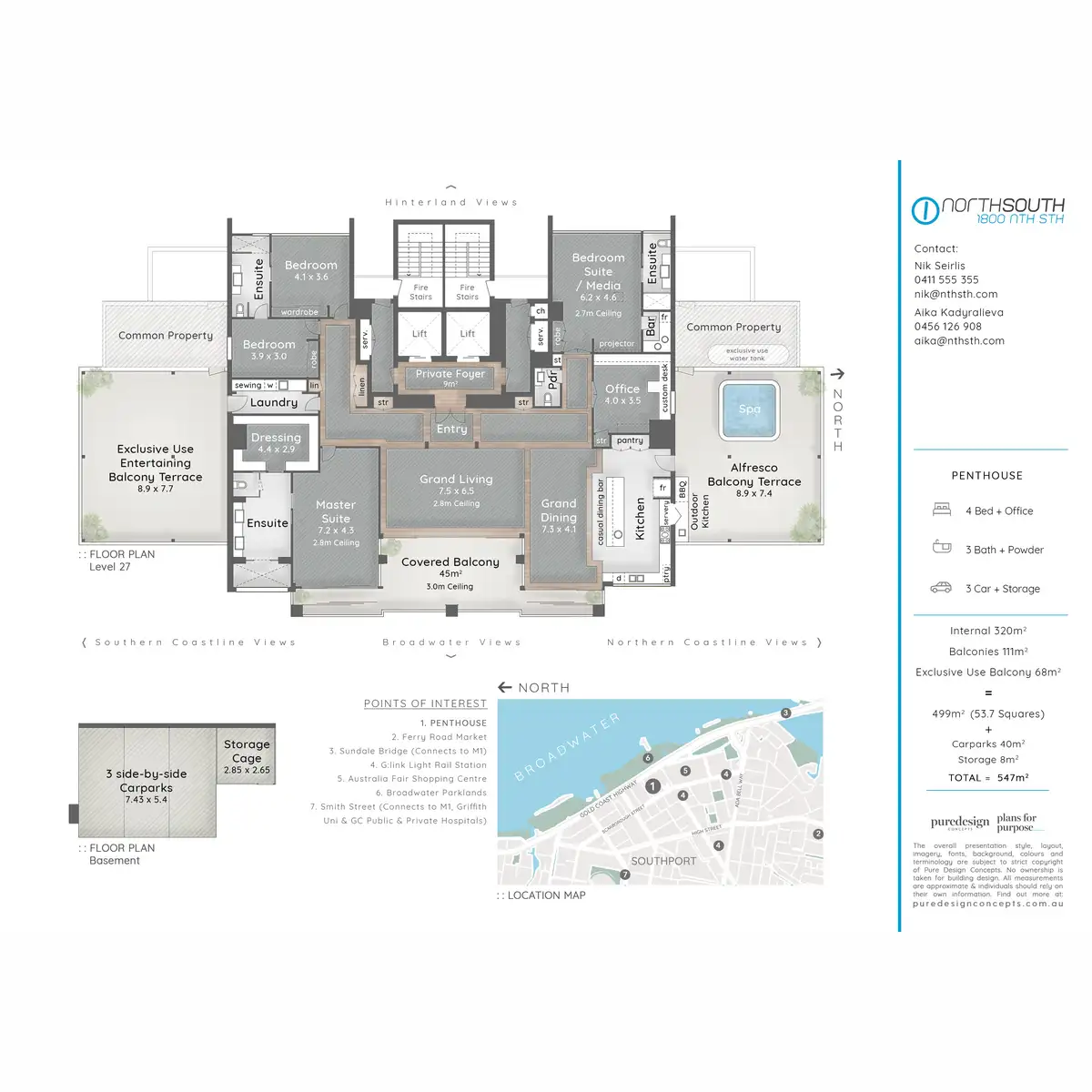 The Penthouse offers a rarefied and bespoke lifestyle surrounded by sublime ocean and hinterland views. Please see the 360 degree panoramic interactive aerial photo and a 3D-Virtual tour.