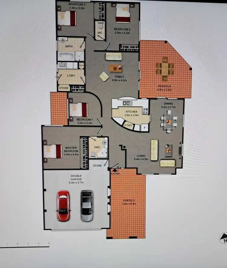 A portico entrance and easy-care gardens welcome you inside. The floor plan has been crafted to embrace rare, spacious yet separate living areas. Stepping inside, you enter a spacious, carpeted living and dining area, multiple windows flooding the room with light. Move through to the second living/family area and kitchen, all tiled for convenience, which flow to the outdoors and pergola with ease. The gourmet kitchen features electric hot plates boasting modern design elements. Ample storage keeps everything organised, while the large benchtop offers plenty of prep space. Also, with direct access to the main living areas.