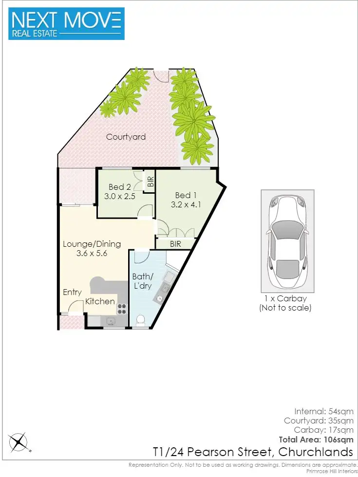 - Total Strata Area 106m2. Internal 52m2, Courtyard 35m2, Parking 17m2